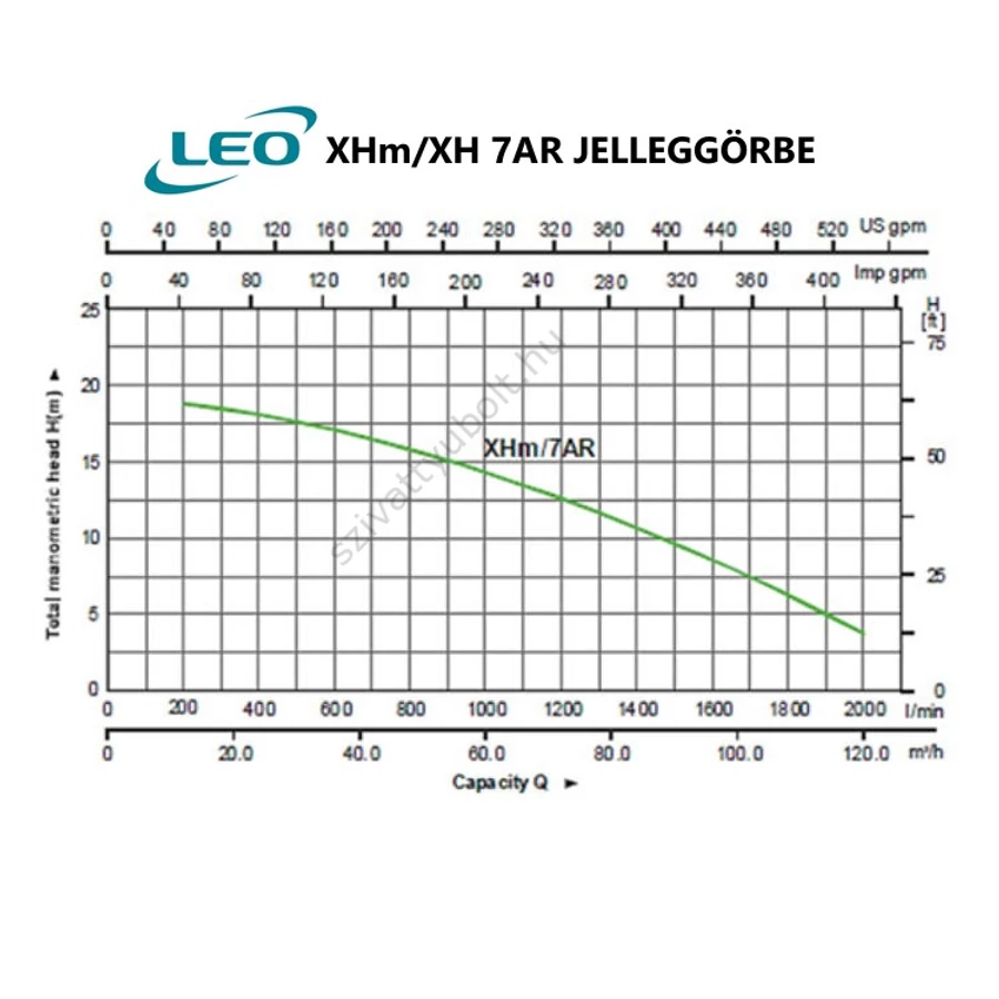 Az XH 7AR centrifugál szivattyút kifejezetten nagy mennyiségű folyadék szállítására tervezték. Kis emelési magassága nem teszi lehetővé hálózati víz nyomásának létrehozására, viszont jól teljesít átemelési, keringetési és árasztásos locsolás területén. Jellemzően az ipar és mezőgazdaság területén alkalmazzák. Közkedvelt típus jó ár-érték aránya miatt.